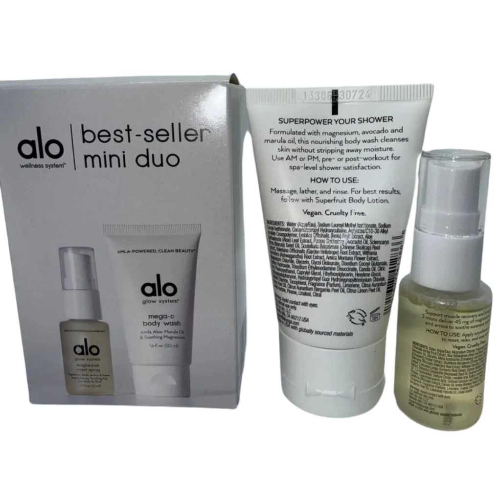 Adquira já o Alo Yoga Glow System Magnesium Reset Spray and Mega C Body Wash e sinta a diferença do bem-estar limpo no seu dia a dia!