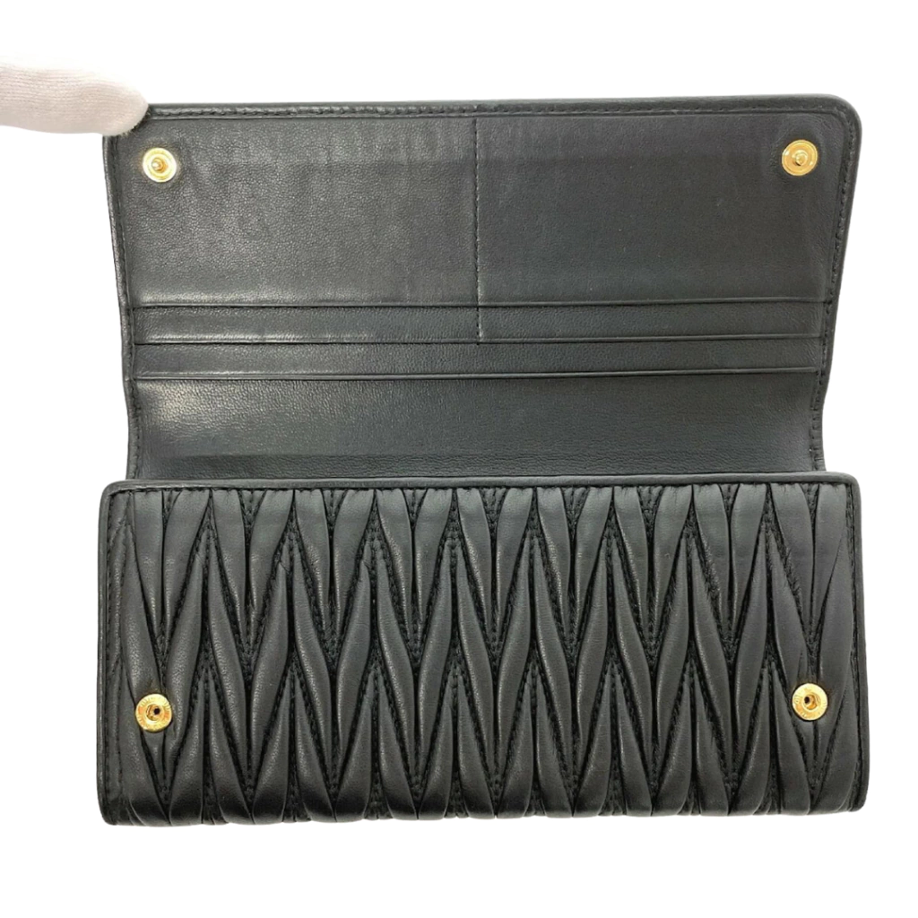 A Carteira Miu Miu Bi-Fold Matelassé é a definição de luxo e praticidade. Este modelo, feito em couro preto com o icônico acabamento "matelassé", é um acessório essencial para quem busca funcionalidade sem abrir mão da elegância da Miu Miu.
