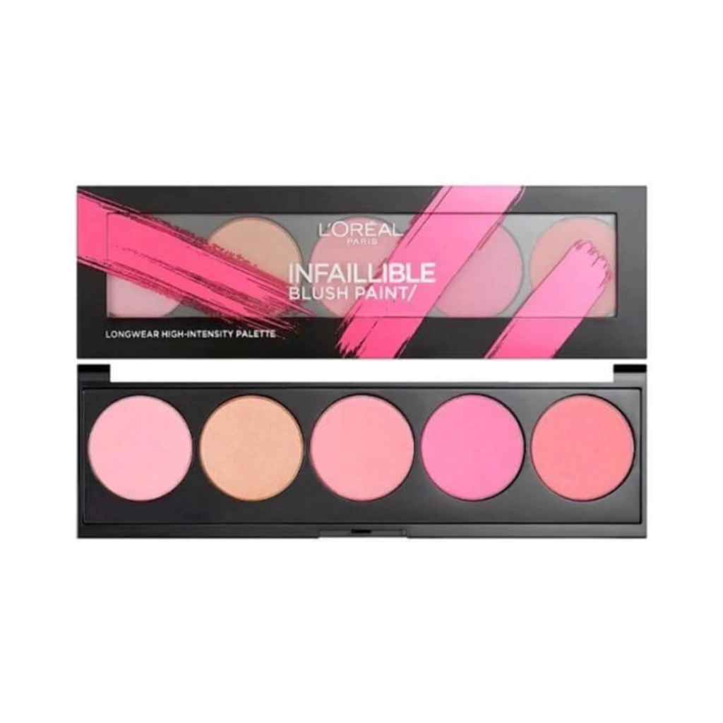 LOreal Infaillible Blush Paint Pinks oferece brilho edificável altamente pigmentado às suas bochechas com 5 tons lindos. Use sozinho ou em camadas para um acabamento multidimensional esculpido. Os tons de longa duração incluem Ballet Dream, Despinkable Me, Peony Rose, Fuchsia Afterhours e Flamingo Dance Size. Tamanho: 10g.
