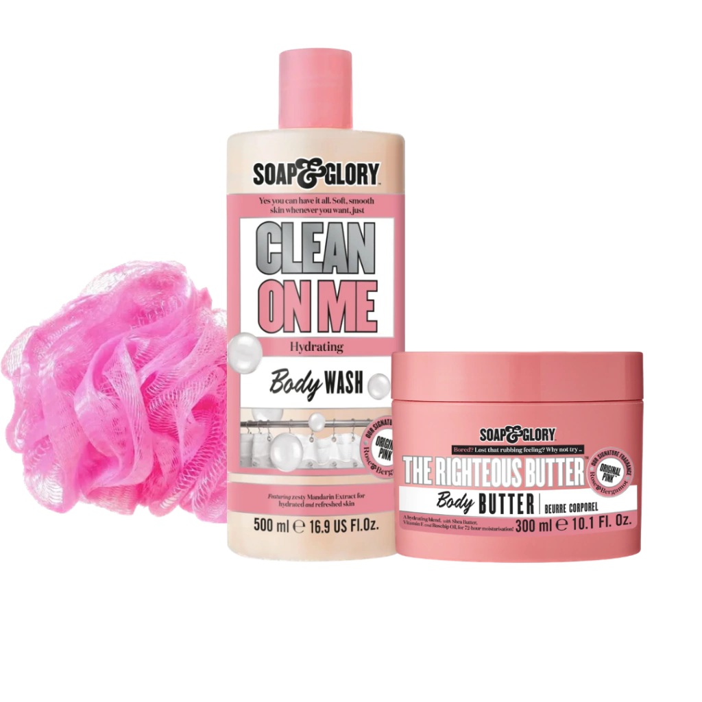 Ela vai se divertir! Melhor ainda com a Soap & GloryTM's The Birthday BoxTM! Este kit de banho espumoso, fresco e cheio de umidade e glam apresenta o clássico Gel de banho cremoso Clean on MeTM da Soap & GloryTM, sua manteiga corporal Righteous ButterTM e um puff de chuveiro super suds. Soap & Glory acreditam que aniversários são a maneira da natureza de nos dizer para comer mais bolo! Puff de chuveiro feito de 100% polietileno