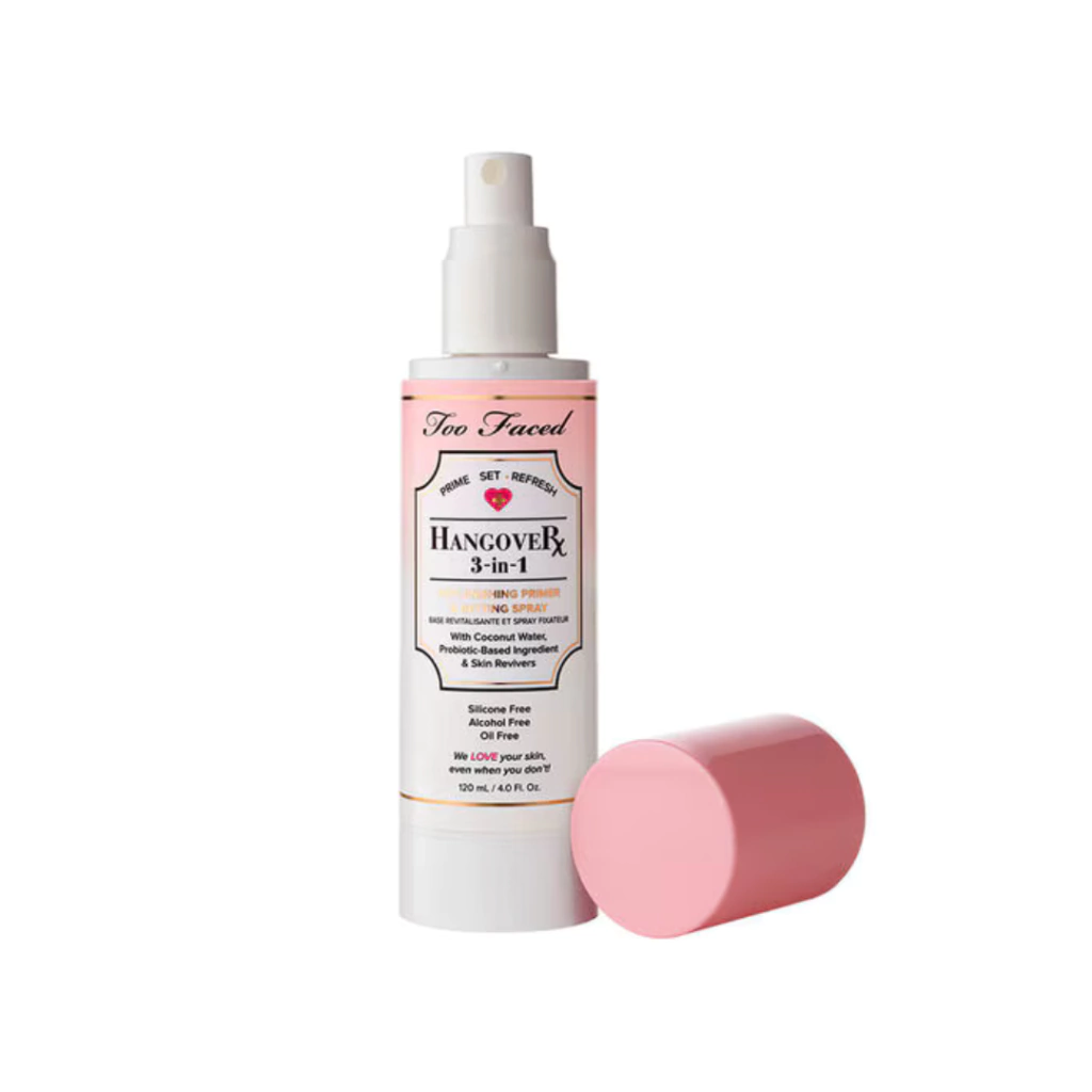 O Too Faced Hangover Spray Primer é a sua solução para os dias em que a sua pele precisa de um revitalizante. Este produto é mais do que um primer: é um verdadeiro "tratamento de ressaca" para a pele, que a deixa com aspecto fresco, radiante e pronto para receber a maquiagem.