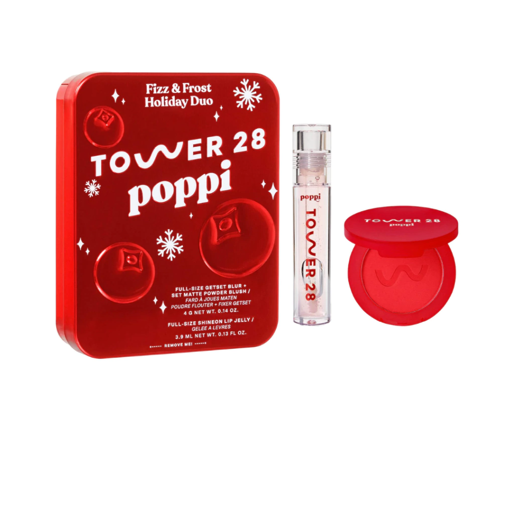 Descubra o duo de beleza perfeito para as festas de fim de ano, exclusivo na Sephora: Tower 28 Beauty x Poppi Fizz + Frost Holiday Duo. Inspirado na icônica soda cranberry da Poppi, este kit traz um blush em pó e um lip jelly que combinam hidratação e cor vibrante para um visual festivo e duradouro.